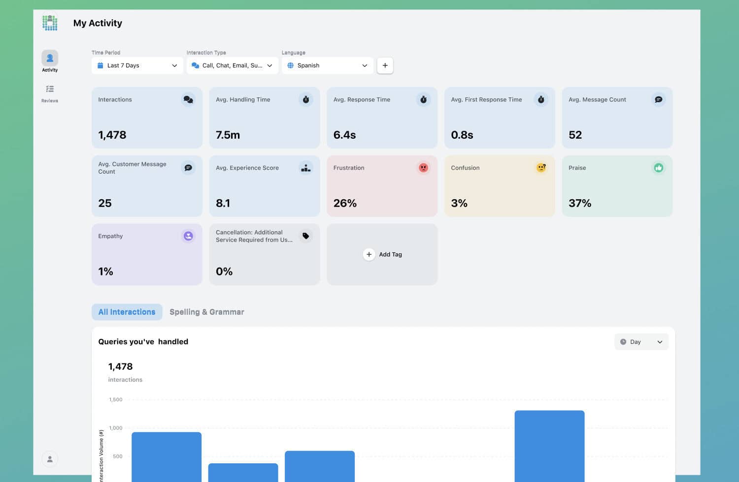 Alongside other interaction analytics, our platform now provides you with resolution tags, to see how well support interactions are being handled.
