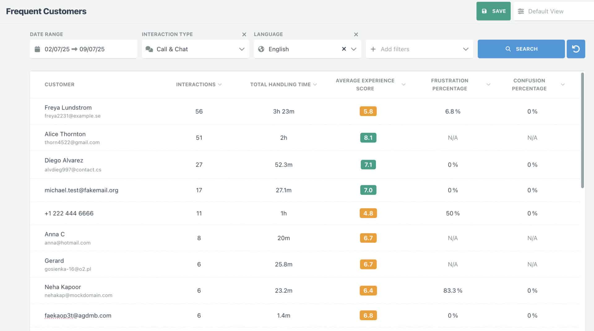 Multiple contacts from the same customer can mean many things: they're happy and engaged, they're dealing with a complex issue, or they keep hitting a recurring roadblock. The new Frequent Customers screen helps you surface customer journeys worth investigating.