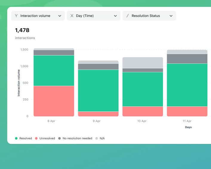 Alongside other interaction analytics, our platform now provides you with resolution tags, to see how well support interactions are being handled.